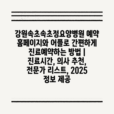 강원속초속초정요양병원 예약 홈페이지와 어플로 간편하게 진료예약하는 방법 | 진료시간, 의사 추천, 전문가 리스트, 2025 정보 제공