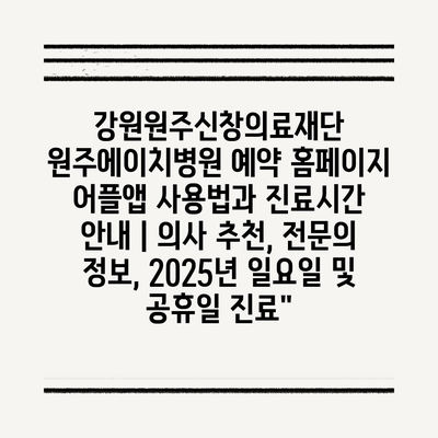 강원원주신창의료재단 원주에이치병원 예약 홈페이지 어플앱 사용법과 진료시간 공지 | 의사 추천, 전연락 정보, 2025년 일요일 및 공휴일 진료에 대해 자주 묻는 질문 TOP 5