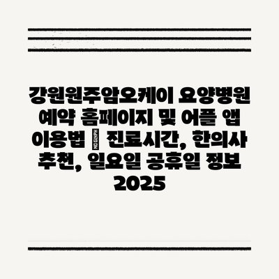 강원원주암오케이 요양병원 예약 홈페이지 및 어플 앱 이용법 | 진료시간, 한의사 추천, 일요일 공휴일 정보 2025 에 대해 자주 묻는 질문 TOP 5