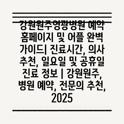 강원원주영광병원 예약 홈페이지 및 어플 완벽 설명서| 진료시간, 의사 추천, 일요일 및 공휴일 진료 정보 | 강원원주, 병원 예약, 전연락 추천, 2025 에 대해 자주 묻는 질문 TOP 5