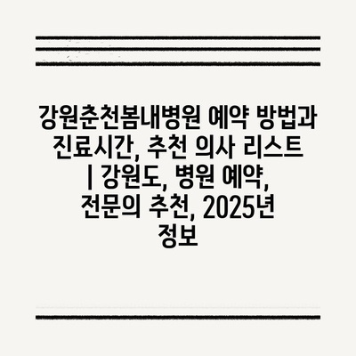 강원춘천봄내병원 예약 방법과 진료시간, 추천 의사 리스트 | 강원도, 병원 예약, 전연락 추천, 2025년 정보 에 대해 자주 묻는 질문 TOP 5