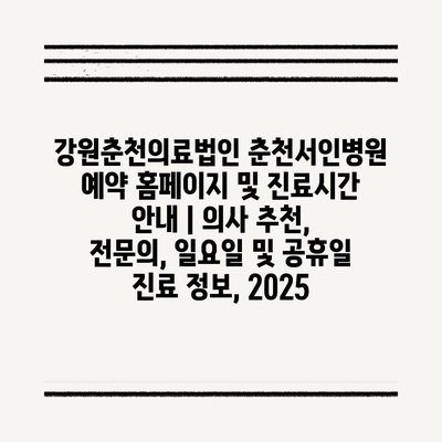 강원춘천의료법인 춘천서인병원 예약 홈페이지 및 진료시간 공지 | 의사 추천, 전연락, 일요일 및 공휴일 진료 정보, 2025 에 대해 자주 묻는 질문 TOP 5