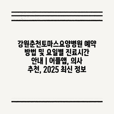 강원춘천토마스요양병원 예약 방법 및 요일별 진료시간 공지 | 어플앱, 의사 추천, 2025 최신 정보 에 대해 자주 묻는 질문 TOP 5