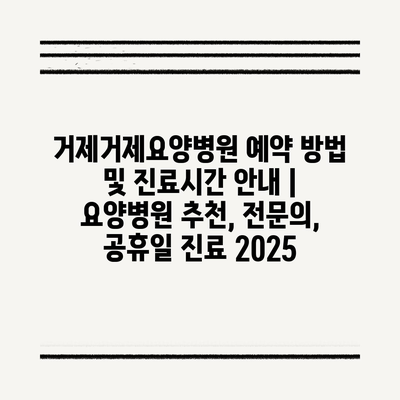 거제거제요양병원 예약 방법 및 진료시간 안내 | 요양병원 추천, 전문의, 공휴일 진료 2025