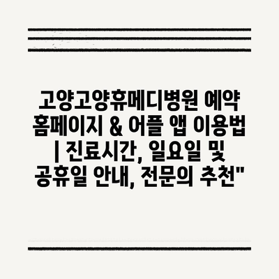 ✅ 고양고양휴메디병원의 예약 방법과 진료시간을 알아보세요.
