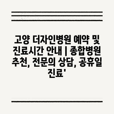 고양 더자인병원 예약 및 진료시간 안내 | 종합병원 추천, 전문의 상담, 공휴일 진료’