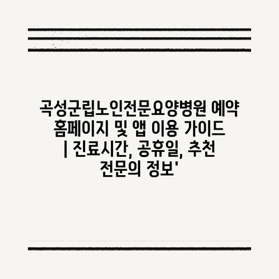 ✅ 곡성군립노인전문요양병원의 예약 방법을 쉽게 알아보세요.