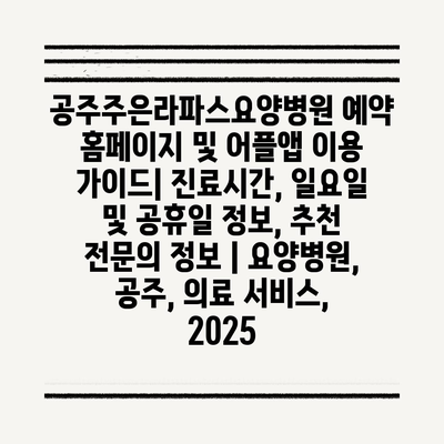 공주주은라파스요양병원 예약 홈페이지 및 어플앱 이용 설명서| 진료시간, 일요일 및 공휴일 정보, 추천 전연락 정보 | 요양병원, 공주, 의료 서비스, 2025 에 대해 자주 묻는 질문 TOP 5