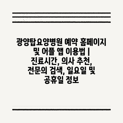 광양탑요양병원 예약 홈페이지 및 어플 앱 이용법 | 진료시간, 의사 추천, 전연락 검색, 일요일 및 공휴일 정보에 대해 자주 묻는 질문 TOP 5