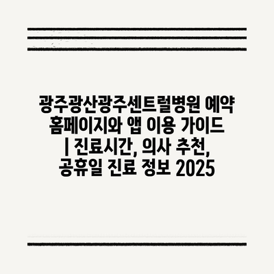 광주광산광주센트럴병원 예약 홈페이지와 앱 이용 설명서 | 진료시간, 의사 추천, 공휴일 진료 정보 2025에 대해 소개합니다.