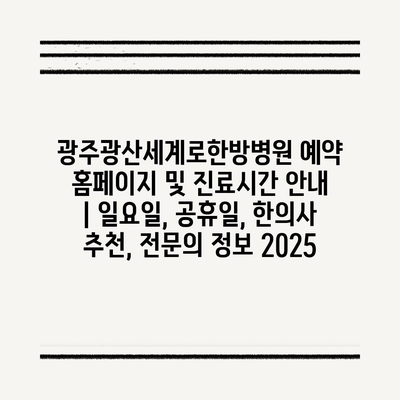 광주광산세계로한방병원 예약 홈페이지 및 진료시간 공지 | 일요일, 공휴일, 한의사 추천, 전연락 정보 2025 에 대해 자주 묻는 질문 TOP 5