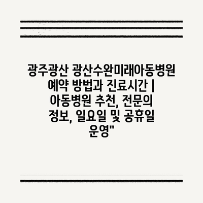 광주광산 광산수완미래아동병원 예약 방법과 진료시간 | 아동병원 추천, 전연락 정보, 일요일 및 공휴일 운영”에 대해 자주 묻는 질문 TOP 5