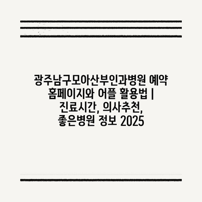 광주남구모아산부인과병원 예약 홈페이지와 어플 활용법 | 진료시간, 의사추천, 좋은병원 정보 2025