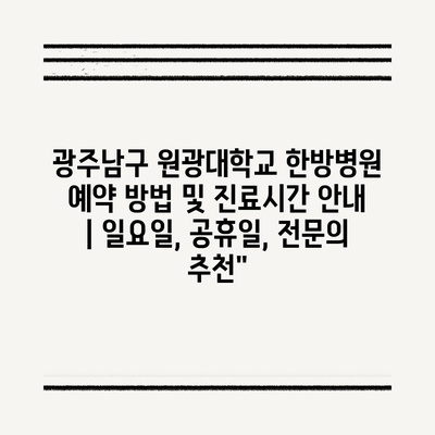 ✅ 광주남구 원광대학교 한방병원의 예약 방법을 지금 확인해 보세요.