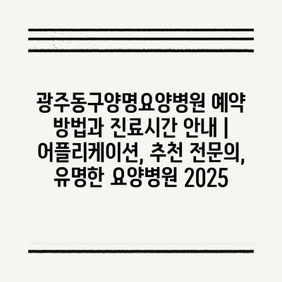 광주동구양명요양병원 예약 방법과 진료시간 안내 | 어플리케이션, 추천 전문의, 유명한 요양병원 2025