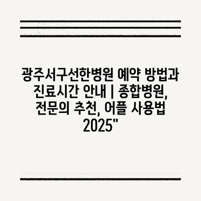 광주서구선한병원 예약 방법과 진료시간 안내 | 종합병원, 전문의 추천, 어플 사용법 2025″