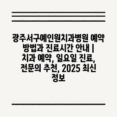 광주서구예인원치과병원 예약 방법과 진료시간 공지 | 치과 예약, 일요일 진료, 전연락 추천, 2025 최신 정보 에 대해 자주 묻는 질문 TOP 5
