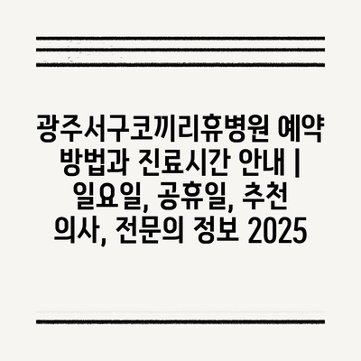 광주서구코끼리휴병원 예약 방법과 진료시간 공지 | 일요일, 공휴일, 추천 의사, 전연락 정보 2025