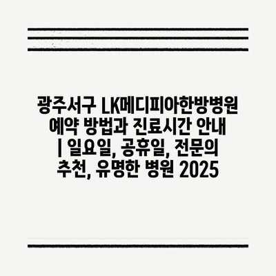 광주서구 LK메디피아한방병원 예약 방법과 진료시간 공지 | 일요일, 공휴일, 전연락 추천, 유명한 병원 2025 에 대해 자주 묻는 질문 TOP 5
