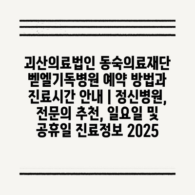 괴산의료법인 동숙의료재단 벧엘기독병원 예약 방법과 진료시간 공지 | 정신병원, 전연락 추천, 일요일 및 공휴일 진료정보 2025 에 대해 자주 묻는 질문 TOP 5