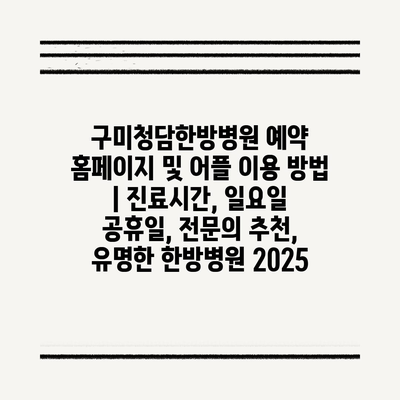 구미청담한방병원 예약 홈페이지 및 어플 이용 방법 | 진료시간, 일요일 공휴일, 전연락 추천, 유명한 한방병원 2025 에 대해 자주 묻는 질문 TOP 5