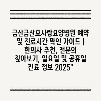 금산금산효사랑요양병원 예약 및 진료시간 확인 설명서 | 한의사 추천, 전연락 찾아보기, 일요일 및 공휴일 진료 정보 2025