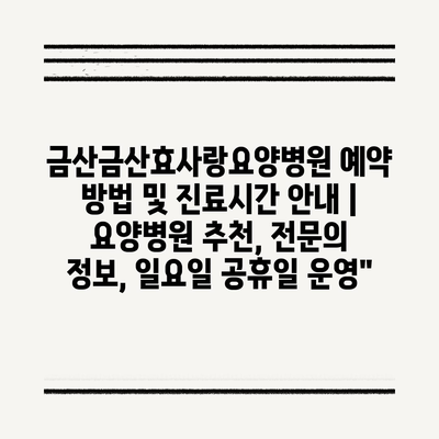✅ 금산효사랑요양병원의 예약 방법과 진료 시간을 간편하게 알아보세요.