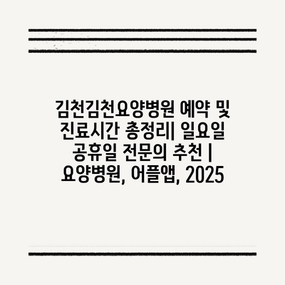 김천김천요양병원 예약 및 진료시간 총정리| 일요일 공휴일 전연락 추천 | 요양병원, 어플앱, 2025에 대해 알아보겠습니다.
