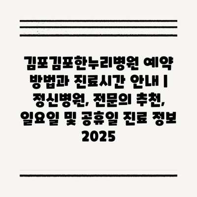 김포김포한누리병원 예약 방법과 진료시간 공지 | 정신병원, 전연락 추천, 일요일 및 공휴일 진료 정보 2025 에 대해 자주 묻는 질문 TOP 5