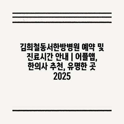 김희철동서한방병원 예약 및 진료시간 공지 | 어플앱, 한의사 추천, 유명한 곳 2025