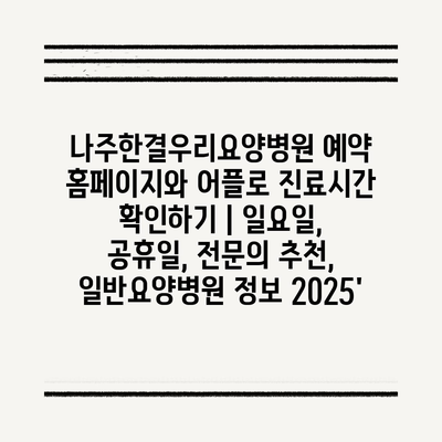 ✅ 나주한결우리요양병원의 진료시간과 예약 방법을 알아보세요.