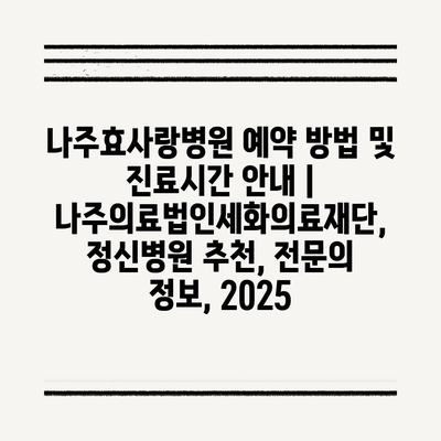 나주효사랑병원 예약 방법 및 진료시간 공지 | 나주의료법인세화의료재단, 정신병원 추천, 전연락 정보, 2025 에 대해 자주 묻는 질문 TOP 5