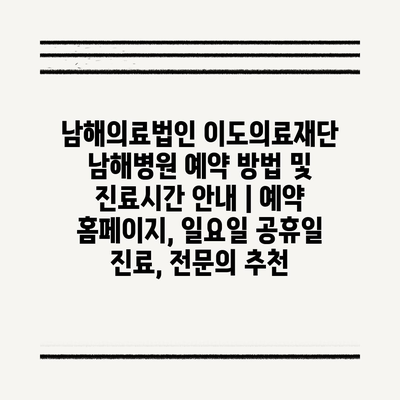 남해의료법인 이도의료재단 남해병원 예약 방법 및 진료시간 공지 | 예약 홈페이지, 일요일 공휴일 진료, 전연락 추천 에 대해 자주 묻는 질문 TOP 5