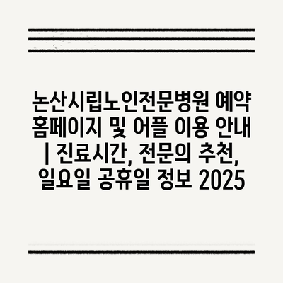 논산시립노인전문병원 예약 홈페이지 및 어플 이용 공지 | 진료시간, 전연락 추천, 일요일 공휴일 정보 2025 에 대해 자주 묻는 질문 TOP 5