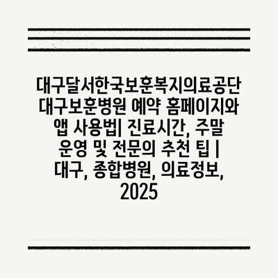 대구달서한국보훈복지의료공단 대구보훈병원 예약 홈페이지와 앱 사용법| 진료시간, 주말 운영 및 전문의 추천 팁 | 대구, 종합병원, 의료정보, 2025