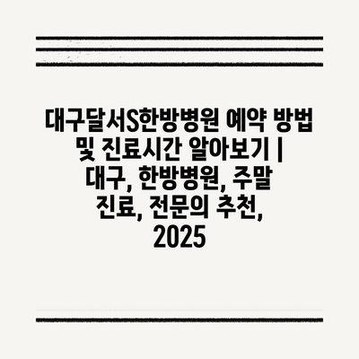 대구달서S한방병원 예약 방법 및 진료시간 알아보기 | 대구, 한방병원, 주말 진료, 전연락 추천, 2025 에 대해 자주 묻는 질문 TOP 5