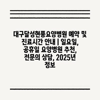 대구달성현풍요양병원 예약 및 진료시간 안내 | 일요일, 공휴일 요양병원 추천, 전문의 상담, 2025년 정보