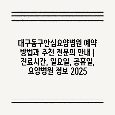 대구동구안심요양병원 예약 방법과 추천 전연락 공지 | 진료시간, 일요일, 공휴일, 요양병원 정보 2025 에 대해 자주 묻는 질문 TOP 5
