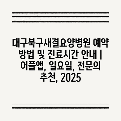 대구북구새결요양병원 예약 방법 및 진료시간 공지 | 어플앱, 일요일, 전연락 추천, 2025