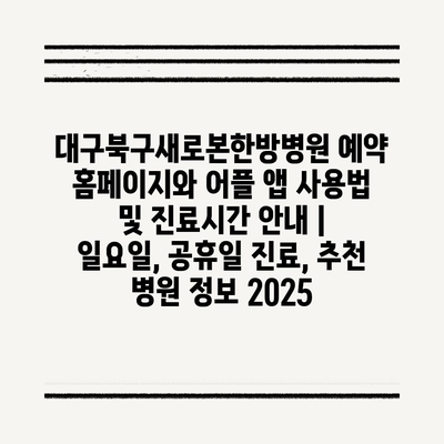 대구북구새로본한방병원 예약 홈페이지와 어플 앱 사용법 및 진료시간 안내 | 일요일, 공휴일 진료, 추천 병원 정보 2025