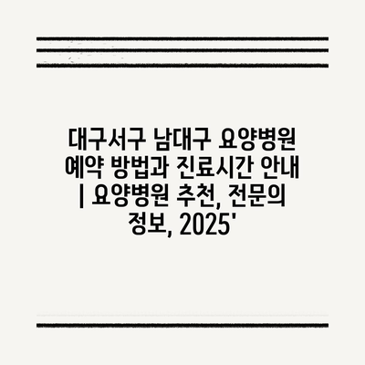 대구서구 남대구 요양병원 예약 방법과 진료시간 공지 | 요양병원 추천, 전연락 정보, 2025’에 대해 자주 묻는 질문 TOP 5