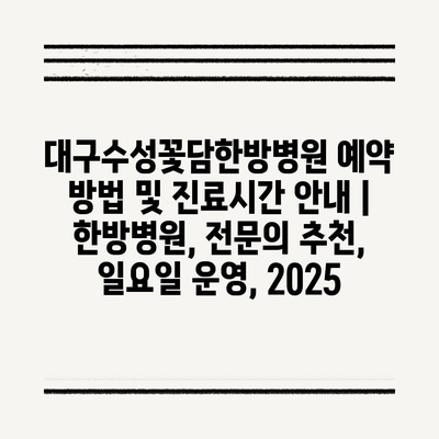 대구수성꽃담한방병원 예약 방법 및 진료시간 공지 | 한방병원, 전연락 추천, 일요일 운영, 2025 에 대해 자주 묻는 질문 TOP 5