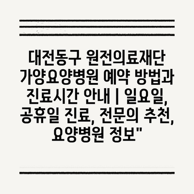 대전동구 원전의료재단 가양요양병원 예약 방법과 진료시간 안내 | 일요일, 공휴일 진료, 전문의 추천, 요양병원 정보”