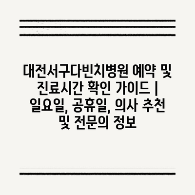 대전서구다빈치병원 예약 및 진료시간 확인 가이드 | 일요일, 공휴일, 의사 추천 및 전문의 정보