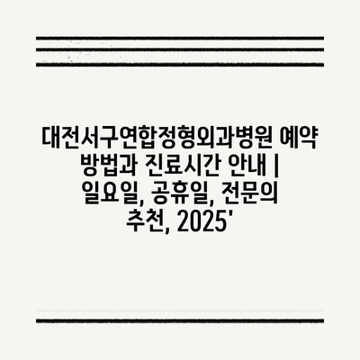 대전서구연합정형외과병원 예약 방법과 진료시간 공지 | 일요일, 공휴일, 전연락 추천, 2025에 대해 알아보겠습니다.