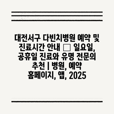 대전서구 다빈치병원 예약 및 진료시간 공지 — 일요일, 공휴일 진료와 유명 전연락 추천 | 병원, 예약 홈페이지, 앱, 2025