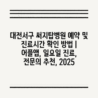 대전서구 써지탑병원 예약 및 진료시간 확인 방법 | 어플앱, 일요일 진료, 전연락 추천, 2025 에 대해 자주 묻는 질문 TOP 5