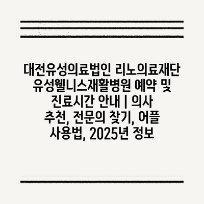 대전유성의료법인 리노의료재단 유성웰니스재활병원 예약 및 진료시간 안내 | 의사 추천, 전문의 찾기, 어플 사용법, 2025년 정보