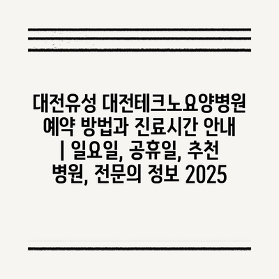 대전유성 대전테크노요양병원 예약 방법과 진료시간 공지 | 일요일, 공휴일, 추천 병원, 전연락 정보 2025