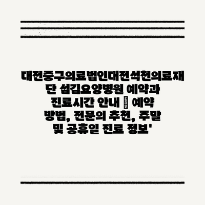 대전중구의료법인대전석천의료재단 섬김요양병원 예약과 진료시간 안내 | 예약 방법, 전문의 추천, 주말 및 공휴일 진료 정보’